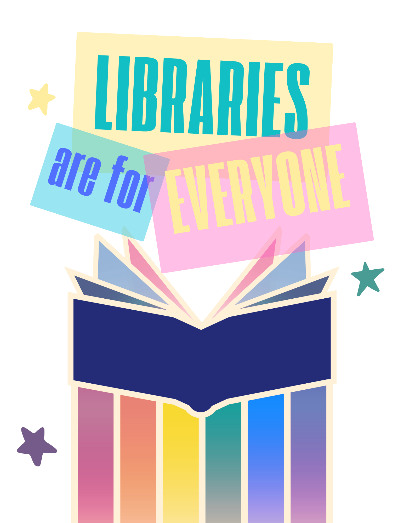 This is a WIP that I am currently in the middle of. I wanted to make a set of graphics signaling to patrons that the library is a safe space available to everyone. For the first design, I was inspired by the fact that the LGBTQ+ inclusivity flag has a “V” shape that I envisioned being turned into an open book. The second design is still very much in the works, but the idea is to highlight accommodations for neurodivergent patrons.